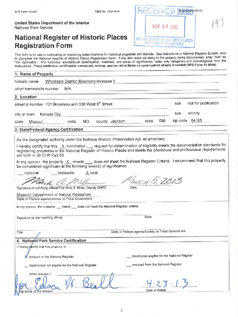 OMS No. 10240018NPS Form 10900United States Department of the Interior National Park ServiceINational Register of Historic Places Registration Form How This form is for use in nominating or requesting