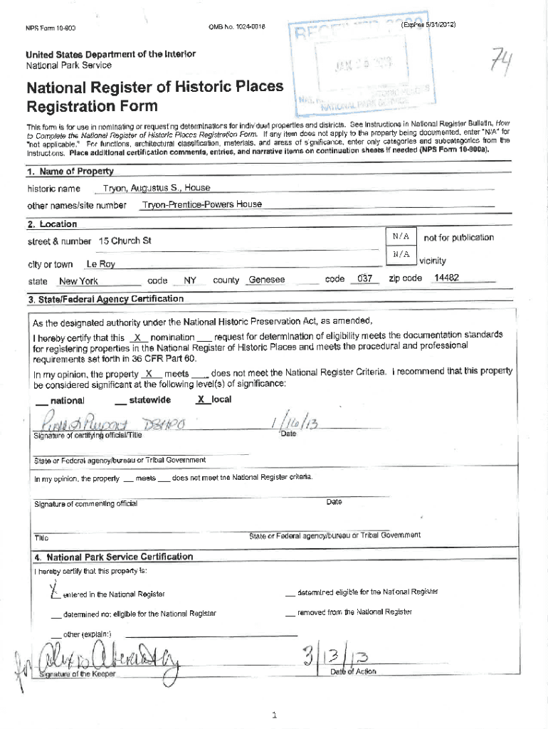 Get the free NPS Form 10-900 OMB No. 1024-0018 (Expires 5/31/2012)