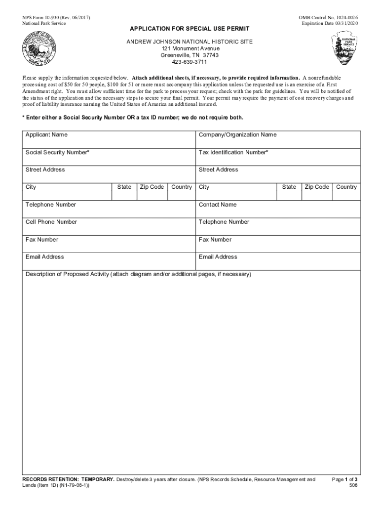 Get the free NPS Form 10-930 Application for Special Use Permit for Andrew Johnson NHS. Special U...