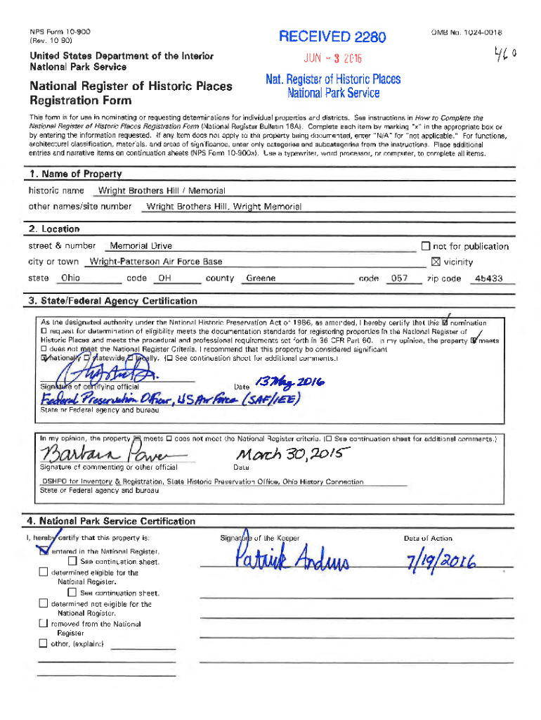 Get the free NPS Form 1 0-900 OMB No. 1024-0018