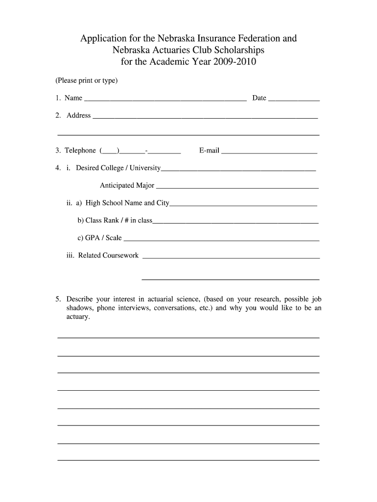 Application for the Nebraska Insurance Federation and Nebraska Actuaries Club Scholarships INSTRUCTIONS Two $4,000 scholarships will be awarded, with each scholarship payable in four equal installments