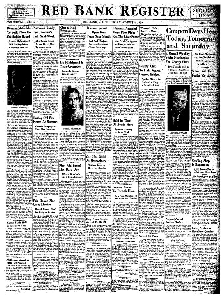 Red Nelson *FEEDBACK j Md Surrounding Town* and Without Biobank REGISTERfOLUMELXII, NO. 6.RED BANK, N. J., THURSDAY, AUGUST 3, 1939;Norman McFadden Nave sink Ready For Firemen's Freeholder Board Fair