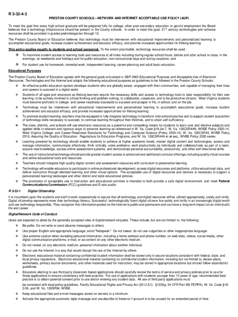 Get the free R 3-32-4-3 PRESTON COUNTY SCHOOLS NETWORK AND INTERNET ...
