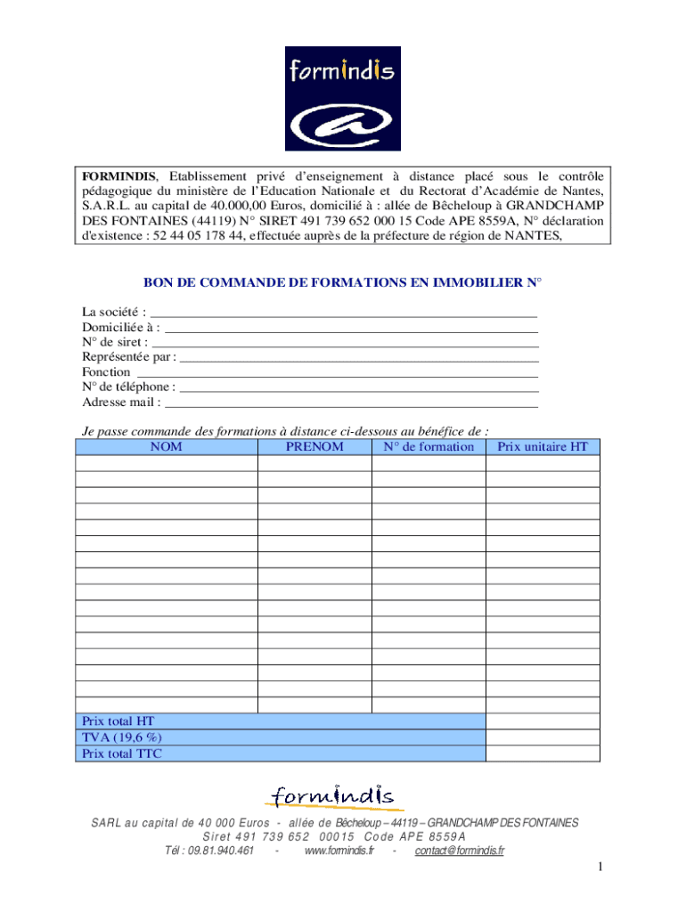 FORMING, Establishment PRI enslavement distance place sous LE contrlepdagogique Du minister DE education National et Du Recto rat academic de Nantes, S.A.R.L. Au capital DE 40,000.00 Euros, domicile
