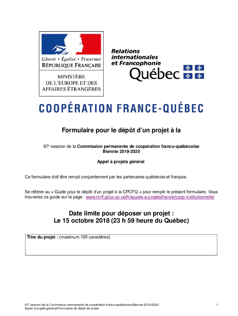 Formula ire pour LE dpt don't project la 67e session DE la Commission permanent DE cooperation francoqubcoise Bennie 20192020 Appeal projects gnarl Ce formula ire dot TRE temple confinement par LES