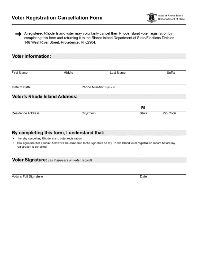 Get the free Voter Registration Cancellation Form - Vote.RI.gov