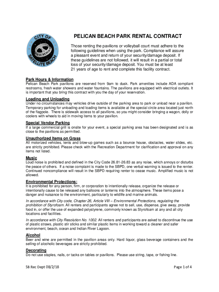 PELICAN BEACH PARK RENTAL CONTRACT Those renting the pavilions or volleyball court must adhere to the following guidelines when using the park. Compliance will assure a pleasant event and return of