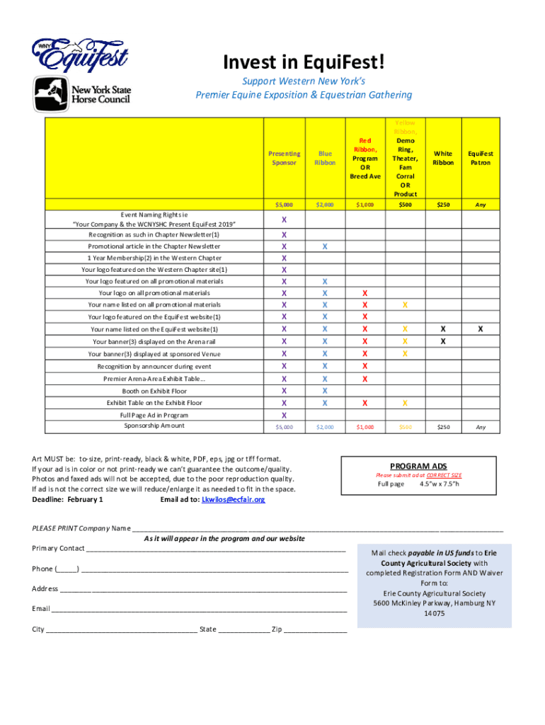 Invest in Equines! Support Western New York's Premier Equine Exposition & Equestrian GatheringEvent Naming Rights i.e. Your Company & the CNSC Present Equines 2019 Recognition as such in Chapter Newsletter(1)