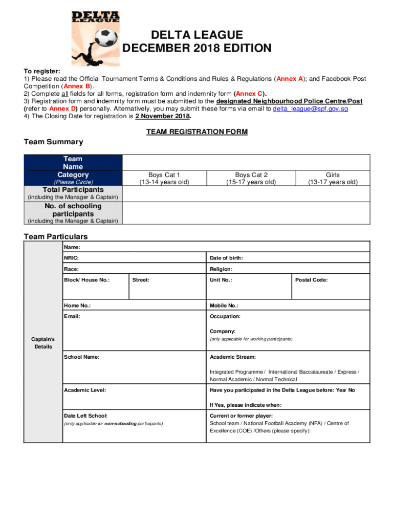 DELTA LEAGUE DECEMBER 2018 EDITION To register: 1) Please read the Official Tournament Terms & Conditions and Rules & Regulations (Annex A); and Facebook Post Competition (Annex B). 2) Complete all