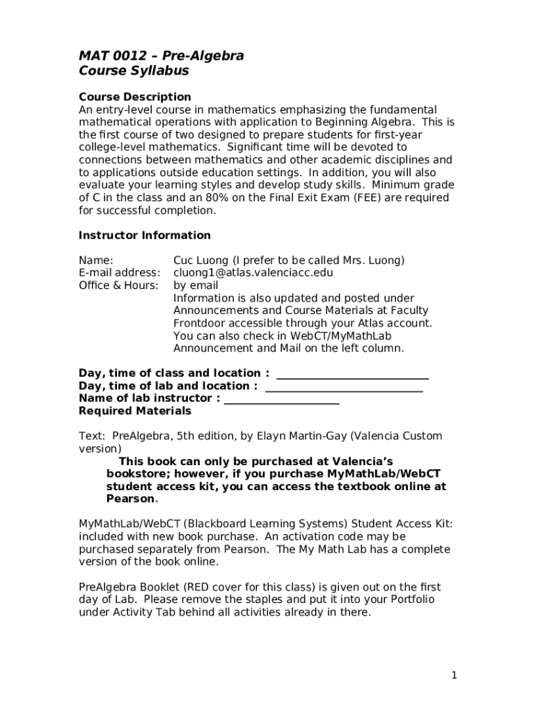SyllabusLinear AlgebraMathematicsMIT OpenCourseWarePreAlgebra A Course Syllabus - Online Full & Part TimeNational UniveSyllabusLinear AlgebraMathematicsMIT OpenCourseWare template instructions