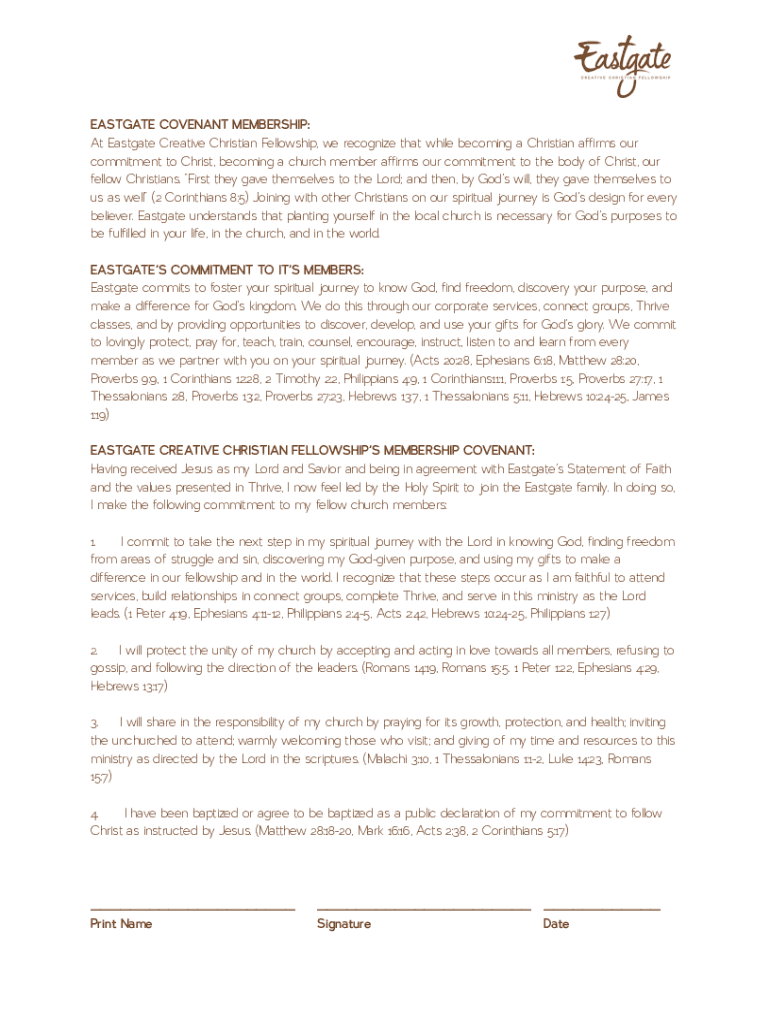 Eastgate Covenant Membership Form is not the form you're looking for?Search for another form here.