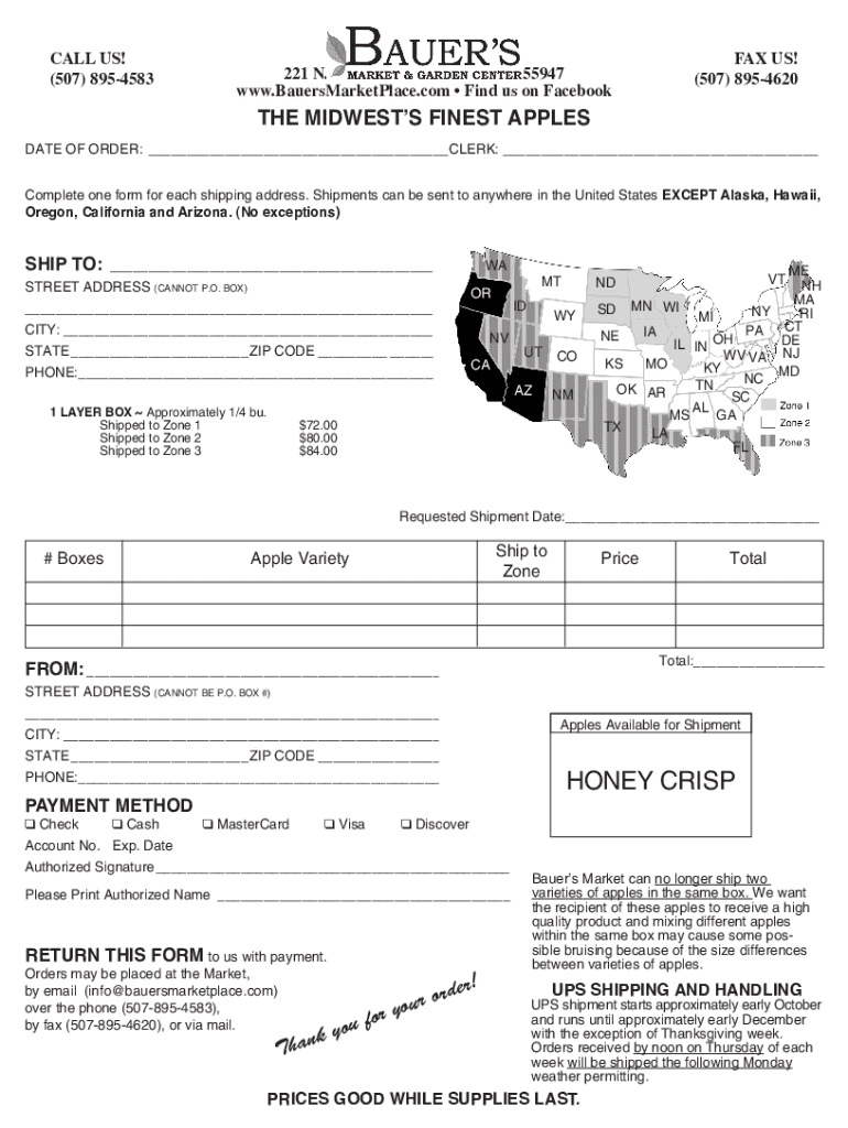 CALL US! (507) 8954583221 N. 2nd St. La Crescent, MN 55947 www.BauersMarketPlace.com Find us on Facebook FAX US! (507) 8954620THE MIDWEST FINEST APPLEGATE OF ORDER: CLERK: Complete one form for each