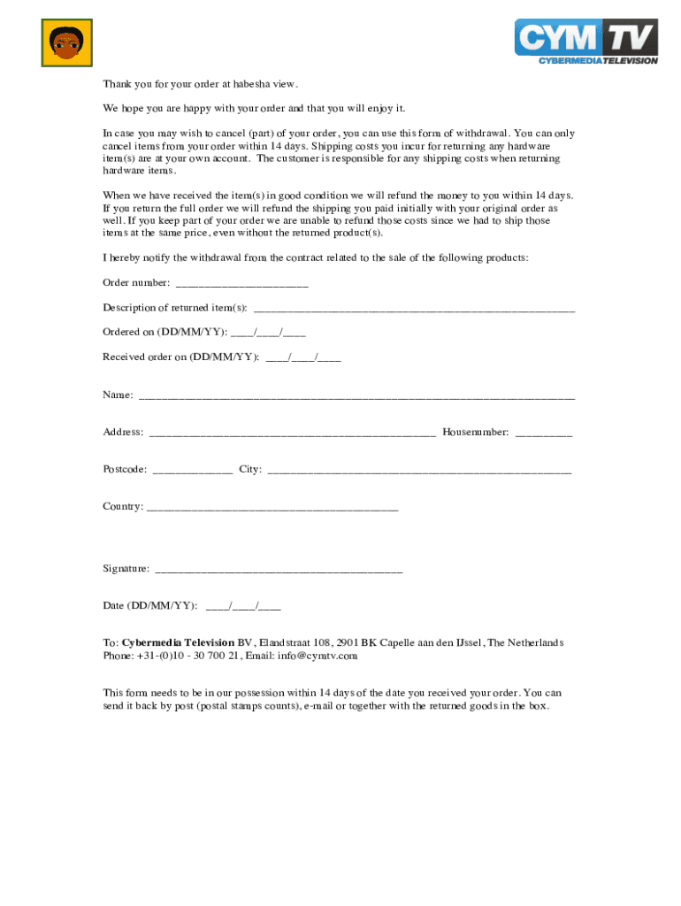 In case you may wish to cancel (part) of your order, you can use this form of withdrawal.