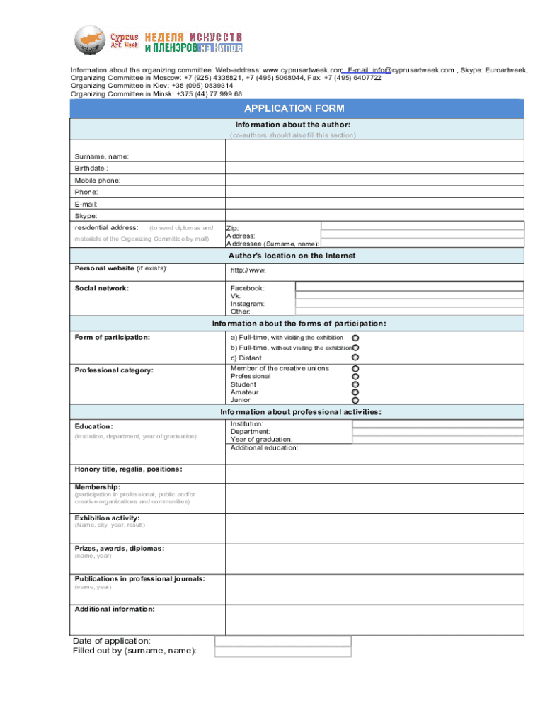 Information about the organizing committee: Web address: www.cyprusartweek.com, Email: info@cyprusartweek.com, Skype: Euroartweek,