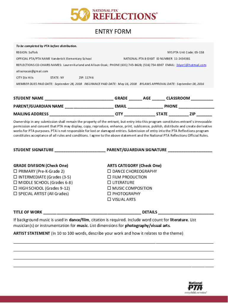 REGION: Suffolk PTA Unit Code: 05158OFFICIAL PTA/PTA NAME Vanderbilt Elementary SchoolNATIONAL PTA 8DIGIT ID NUMBER 112434381REFLECTIONS CHAIRS
