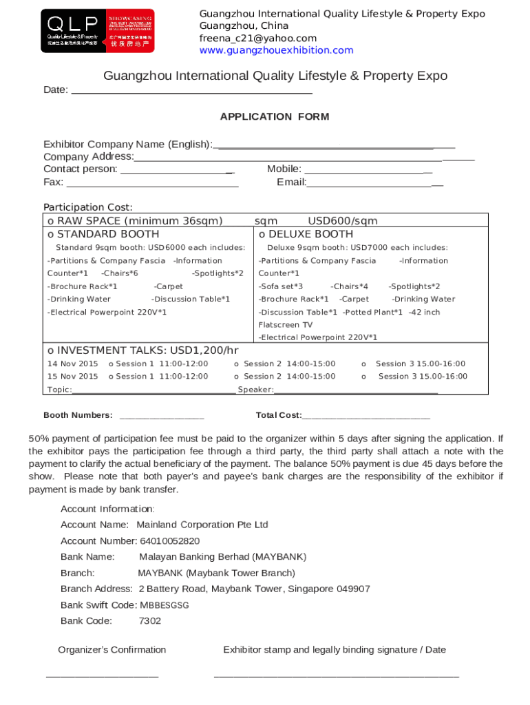 Template Guangzhou International Quality Lifestyle & Property Expo instructions
