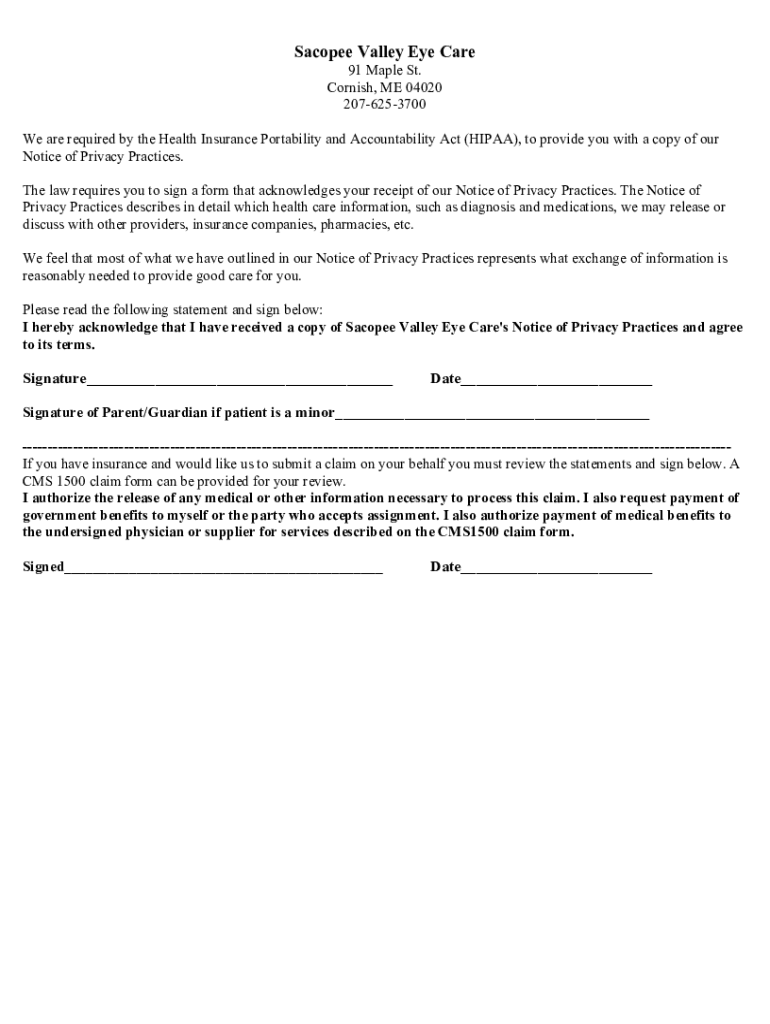 Sign and date the form in the designated spaces to acknowledge that you have read and understood the privacy policies.
