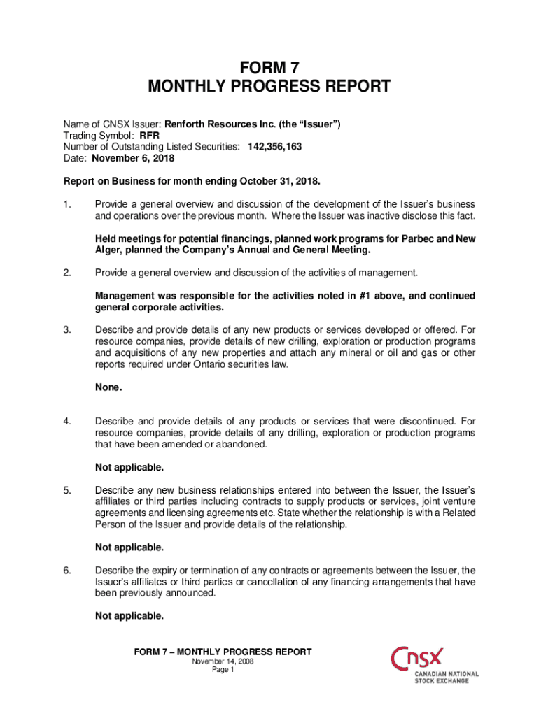 MONTHLY PROGRESS REPORT
