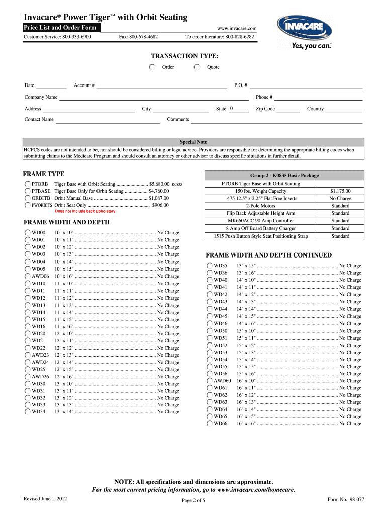 Processing times may vary; however, once the Invacare Power Tiger Order Form is submitted, expect confirmation and order processing to commence within a few business days.