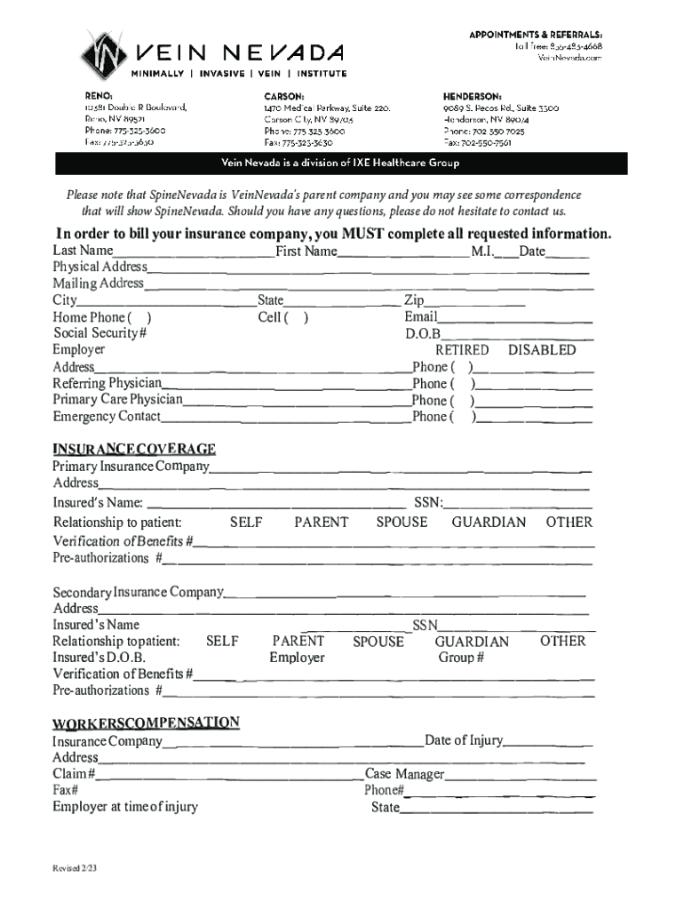 Please note that Spine Nevada is Vein Nevada's parent company, and you may see some correspondence that will show Spine Nevada. Should you have any questions, please do not hesitate to contact us.