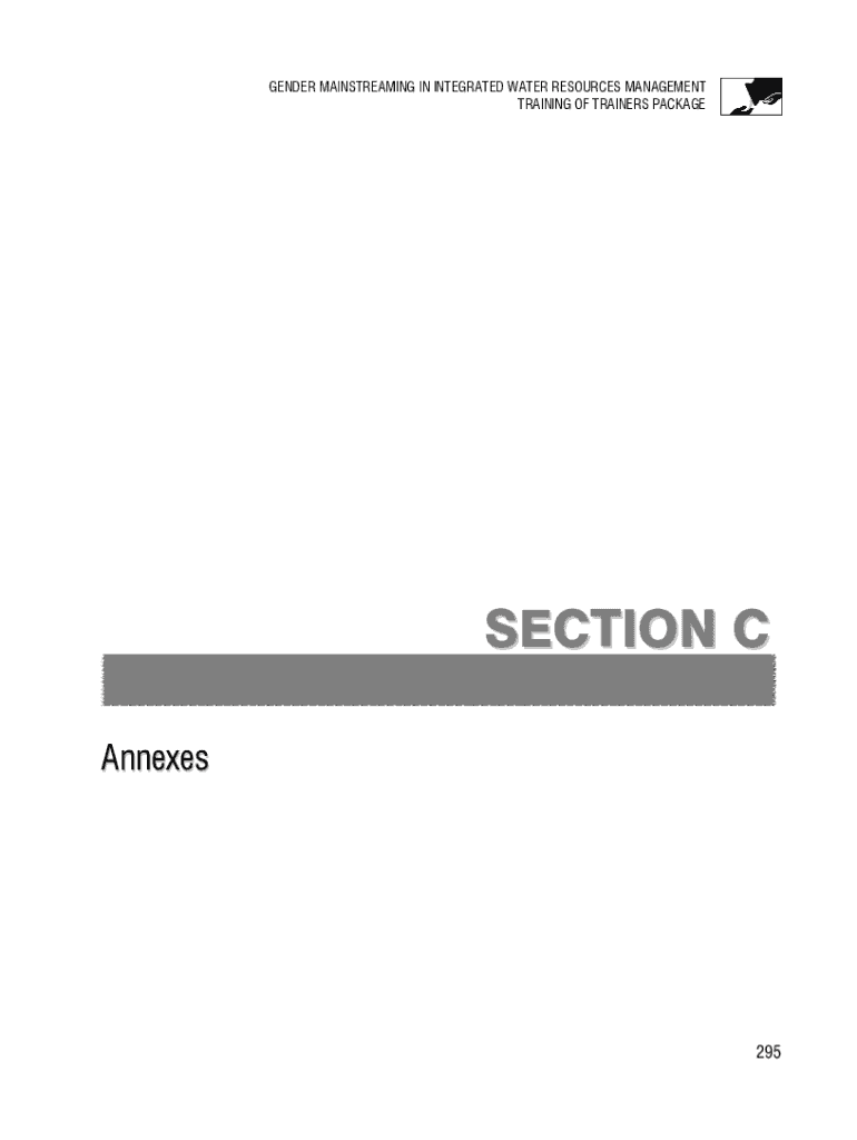Annexes295GENDER MAINSTREAMING IN INTEGRATED WATER RESOURCES MANAGEMENT