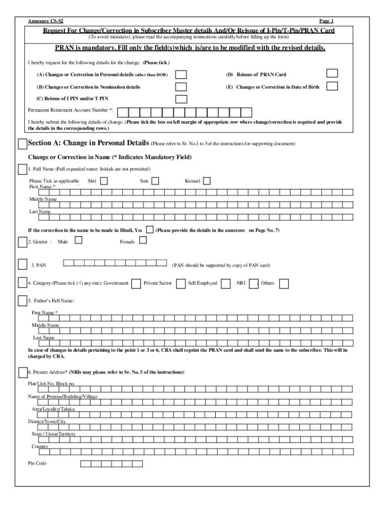 Appendix CSS2Page 1Request For Change/Correction in Subscriber Master details And/Or Reissue of Spin/Spin/PLAN Card