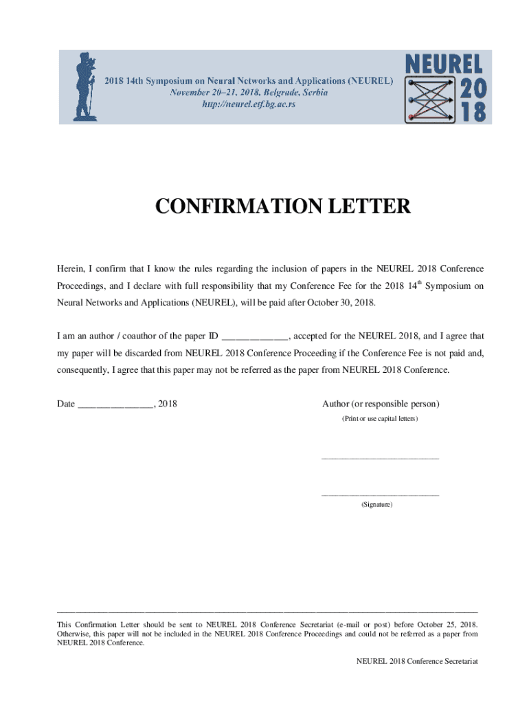 Get the free NEUREL-18 Confirmation Letter - neurel.etf.bg.ac.rs - neurel etf