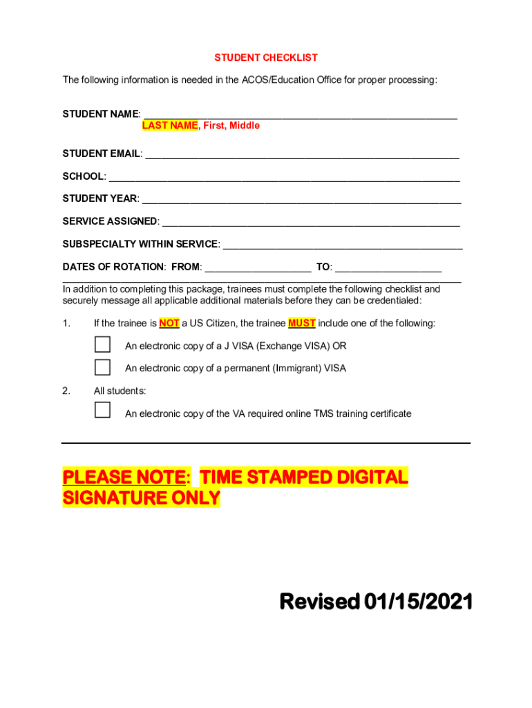 STUDENT CHECKLIST The following information is needed in the ACTS/Education Office for proper processing: STUDENT NAME: LAST NAME, First, Middle STUDENT EMAIL: SCHOOL: STUDENT YEAR: SERVICE ASSIGNED: