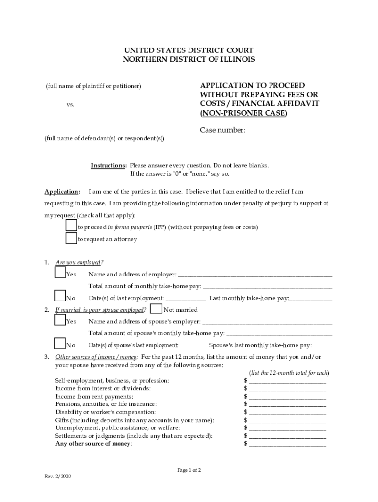 Get the free In Forma Pauperis Application and Financial Affidavit (Non-Prisoner ...
