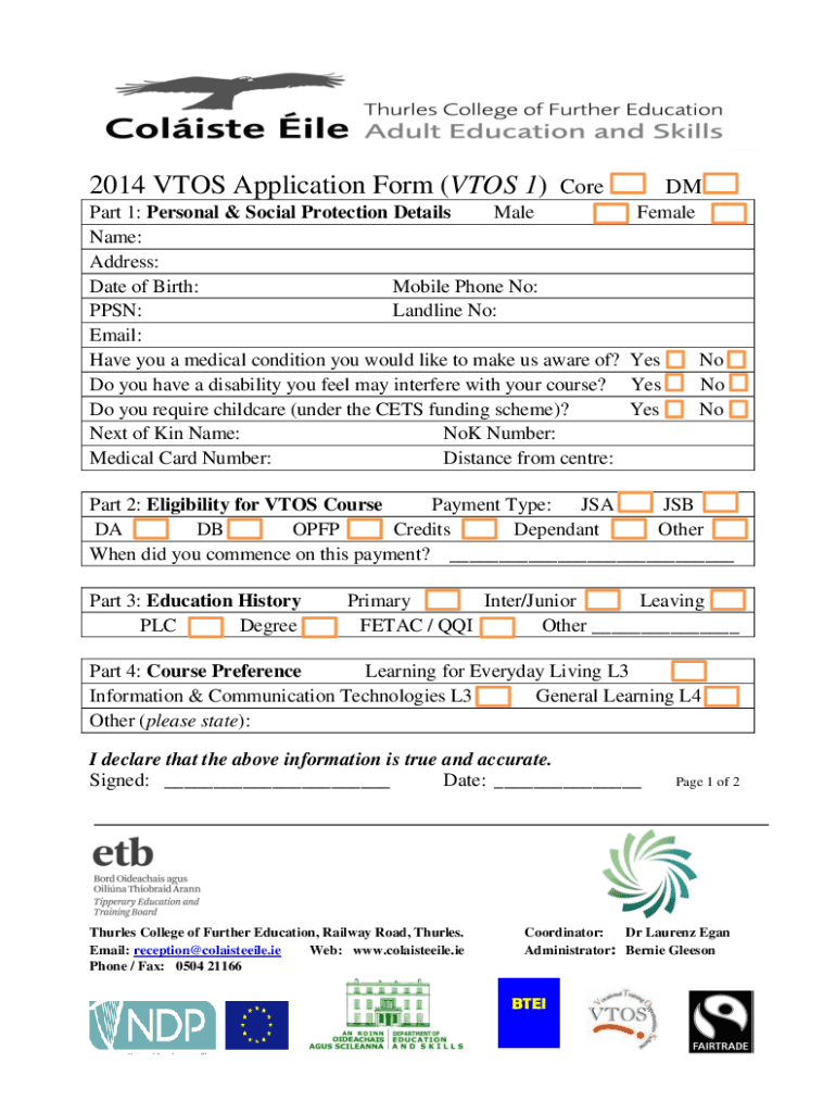 2014 VTOL Application Form (VTOL 1)Forepart 1: Personal & Social Protection Details Male Name: Address: Date of Birth: Mobile Phone No: PPLN: Landline No: Email: Have you a medical condition you would