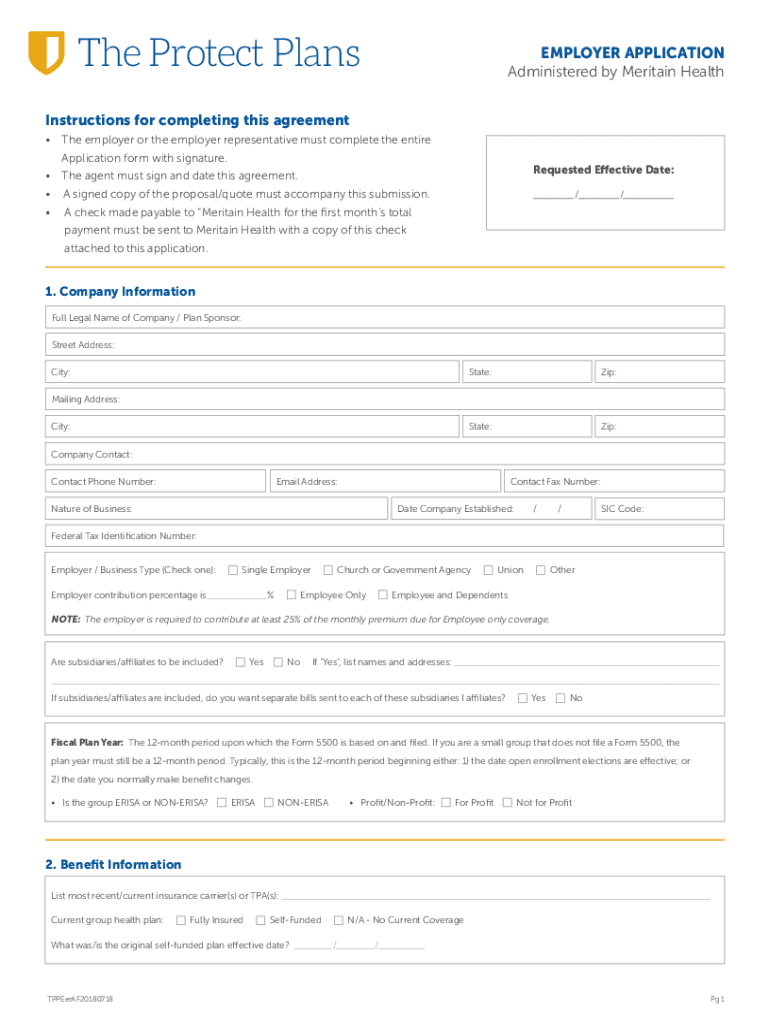 The Protect PlansEMPLOYER APPLICATION Administered by Maritain HealthInstructions for completing this agreement The employer or the employer representative must complete the entire Application form