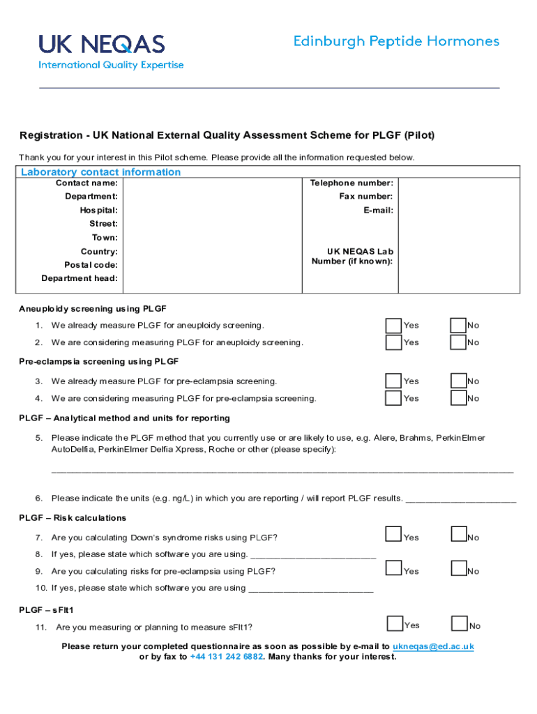 Registration UK National External Quality Assessment Scheme for LGF (Pilot) Thank you for your interest in this Pilot scheme. Please provide all the information requested below. Laboratory contact