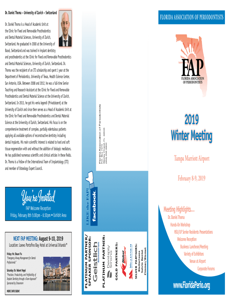Dr. Daniel Thomas University of Zurich Switzerland Florida Association of Periodontists Dr. Daniel Thomas is a Head of Academic Unit at the Clinic for Fixed and Removable Prosthodontist and Dental