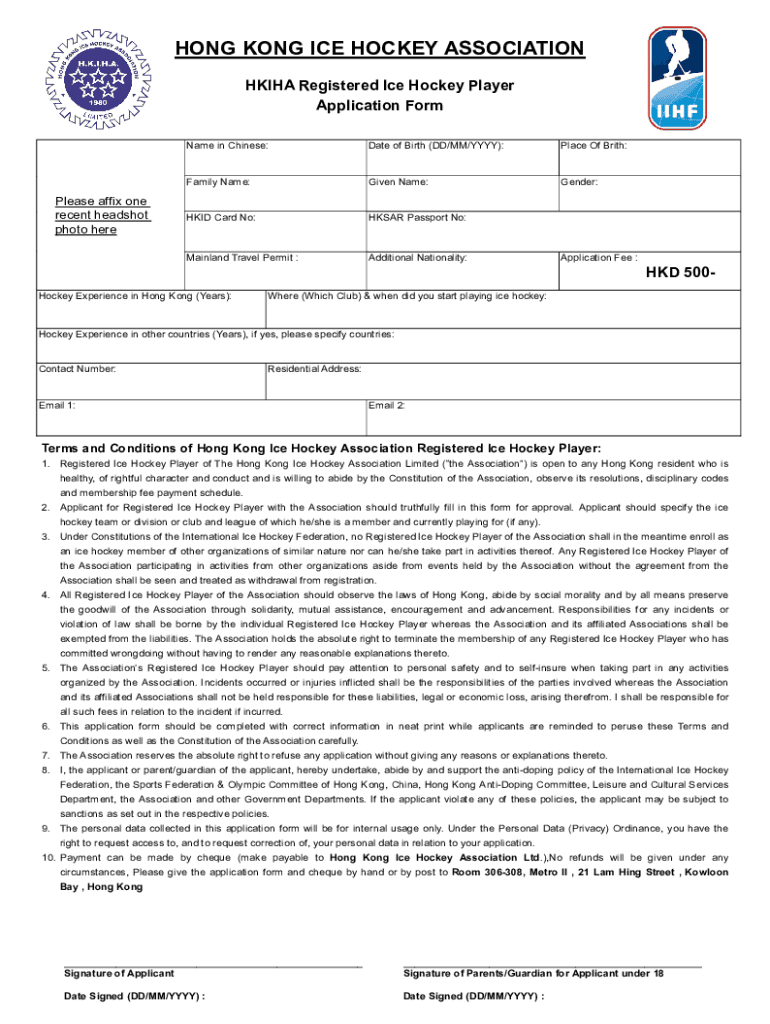 Get the free HKIHA Registered Ice Hockey Player Form