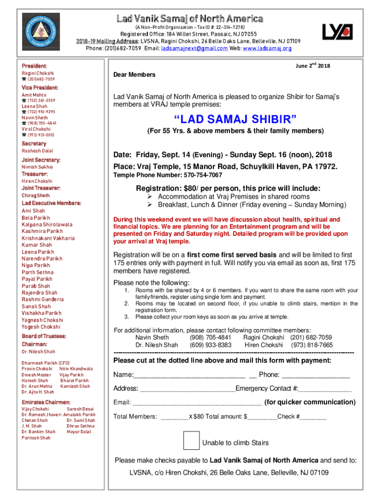 Lad Vania Samar of North America (A Nonprofit Organization Tax ID #: 223147278)Registered Office: 184 Millet Street, Passaic, NJ 07055 201819 Mailing Address: LISA, Raging Chukchi, 26 Belle Oaks Lane,