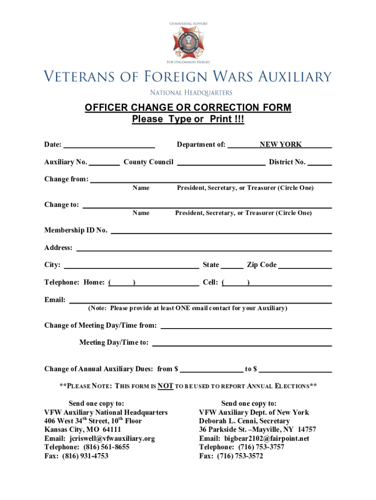 Date:Department of:Auxiliary No. NEW YORKCounty CouncilDistrict No. Change from: