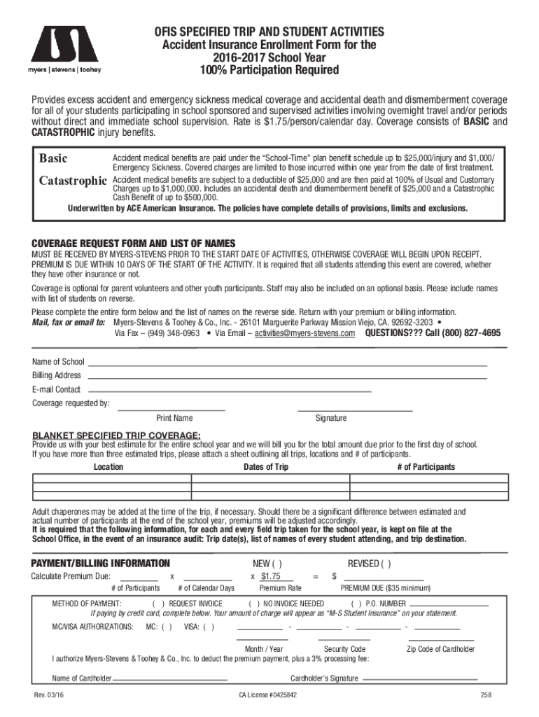Get the free OFIS SPECIFIED TRIP AND STUDENT ACTIVITIES Accident ...