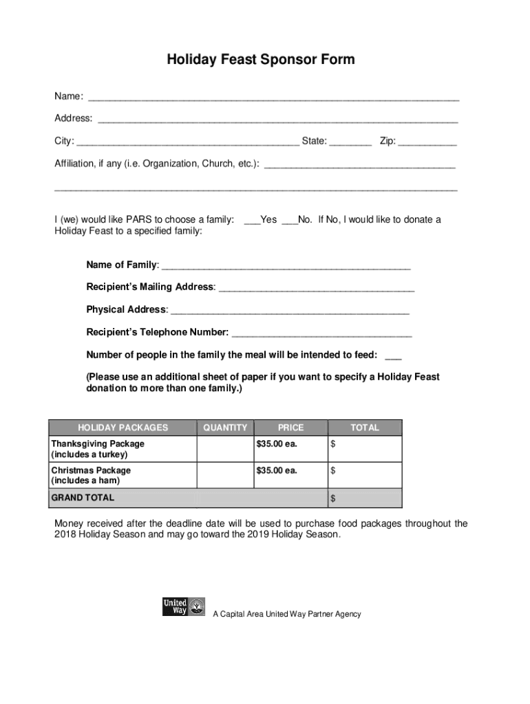 Get the free Holiday Feast Sponsor Form - pierreareareferral.org