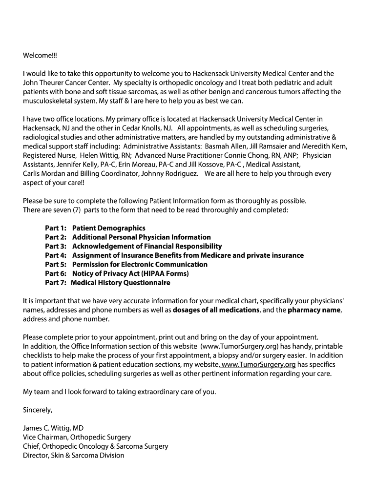 Welcome!!! I would like to take this opportunity to welcome you to Hackensack University Medical Center and the John There Cancer Center. My specialty is orthopedic oncology, and I treat both pediatric