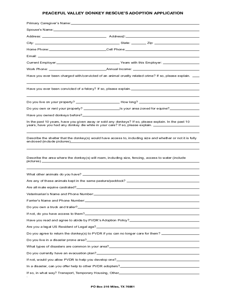PEACEFUL VALLEY DONKEY RESCUES ADOPTION APPLICATION
