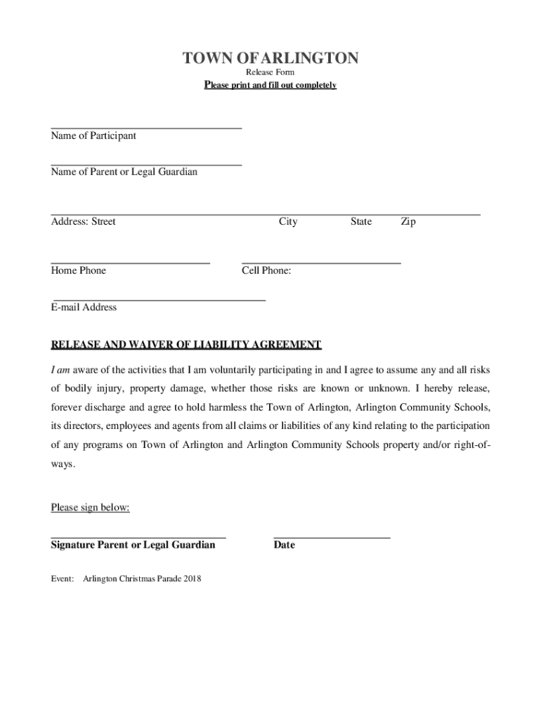 Name of Parent or Legal GuardianAddress: Streetwise PhoneCityStateZipCell Phone:Email AddressRELEASE AND WAIVER
