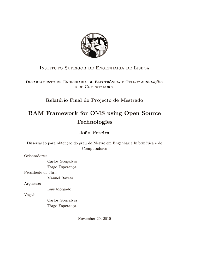 Institute Superior de Engenharia de Lisboa Department de Engenharia de Electrnica e Telecomunicaes e de Commutators Relation Final do Project ode Estrada BAM Framework for OMS using Open Source Technologies