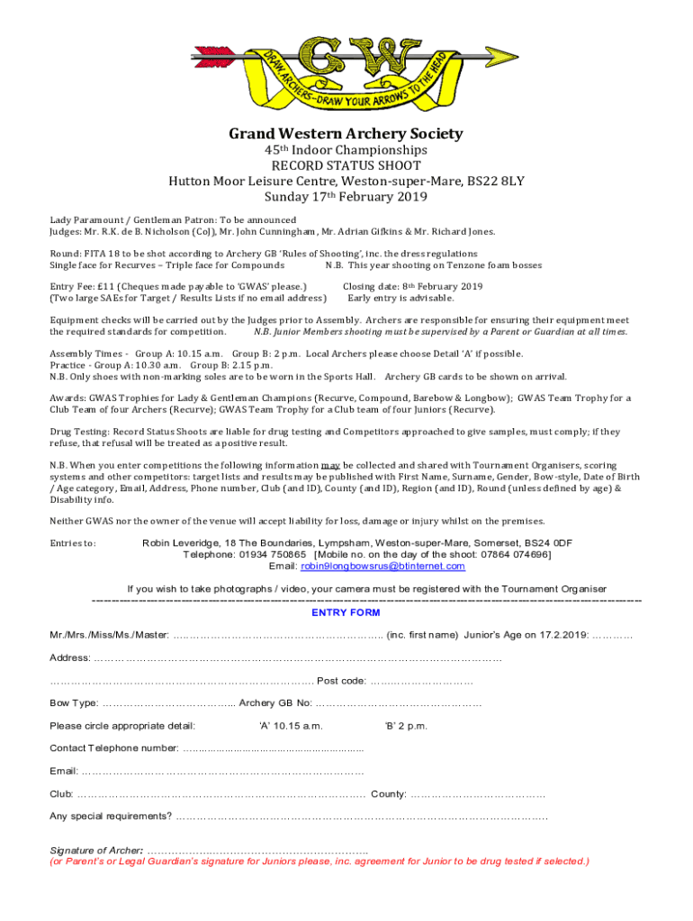 Get the free Online Entry Form - Grand Western Archery Society ... - somersetarchery co