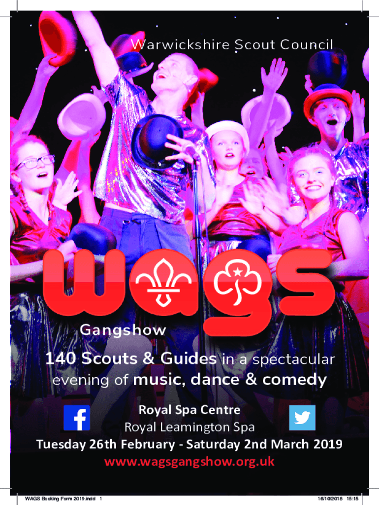 Warwick shire Scout CouncilGangshow140 Scouts & Guides in a spectacular evening of music, dance & comedy Royal Spa Center Royal Lexington Spa Tuesday 26th February Saturday 2nd March 2019 www.wagsgangshow.org.uk