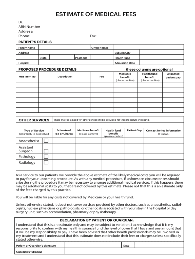 ESTIMATE OF MEDICAL FEES
