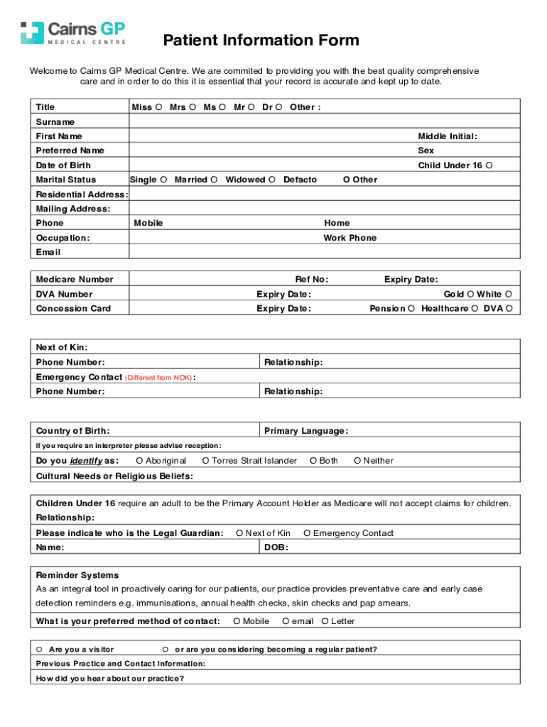 Bulk Billing Doctors Cairns is not the form you're looking for?Search for another form here.