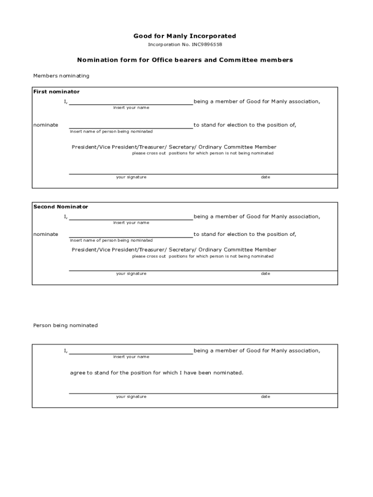 Get the free Nomination form for office bearers and committee members.xlsx