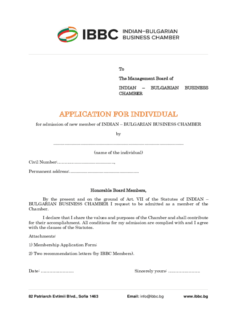 Get the free APPLICATION FOR INDIVIDUAL - IndianBulgarian Business ...