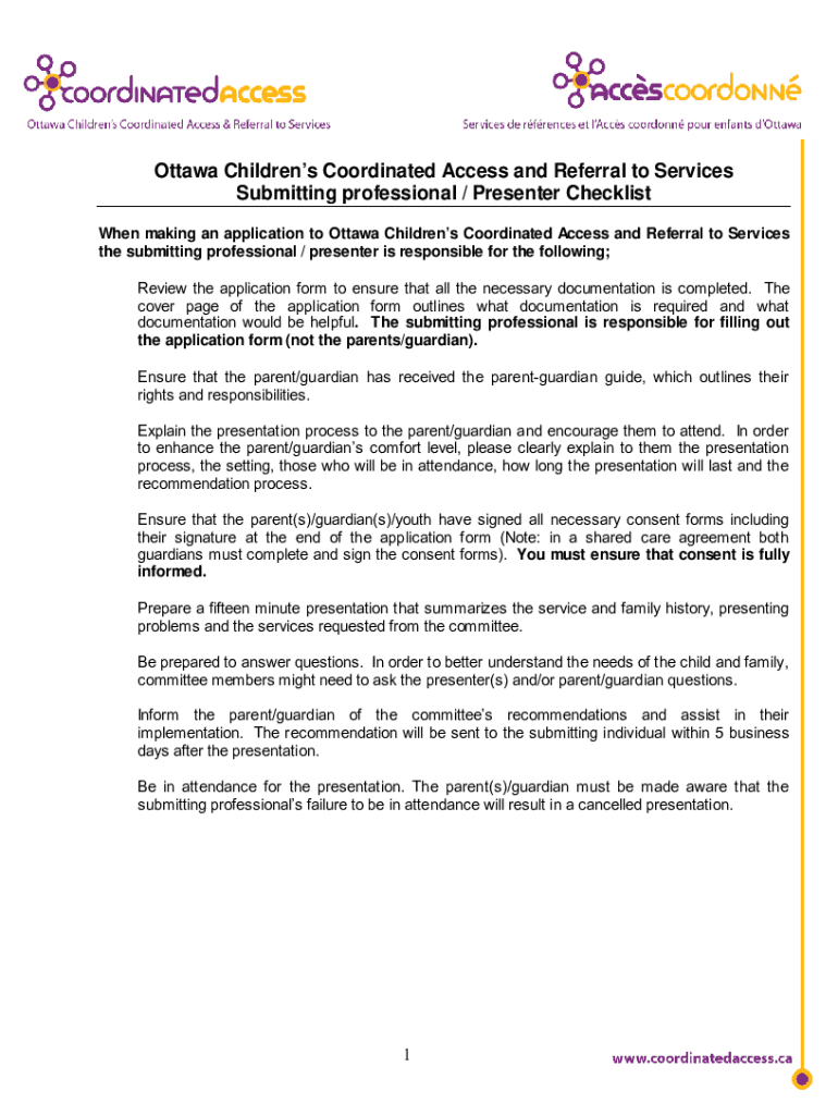 When making an application to Ottawa Children's Coordinated Access and Referral to Services