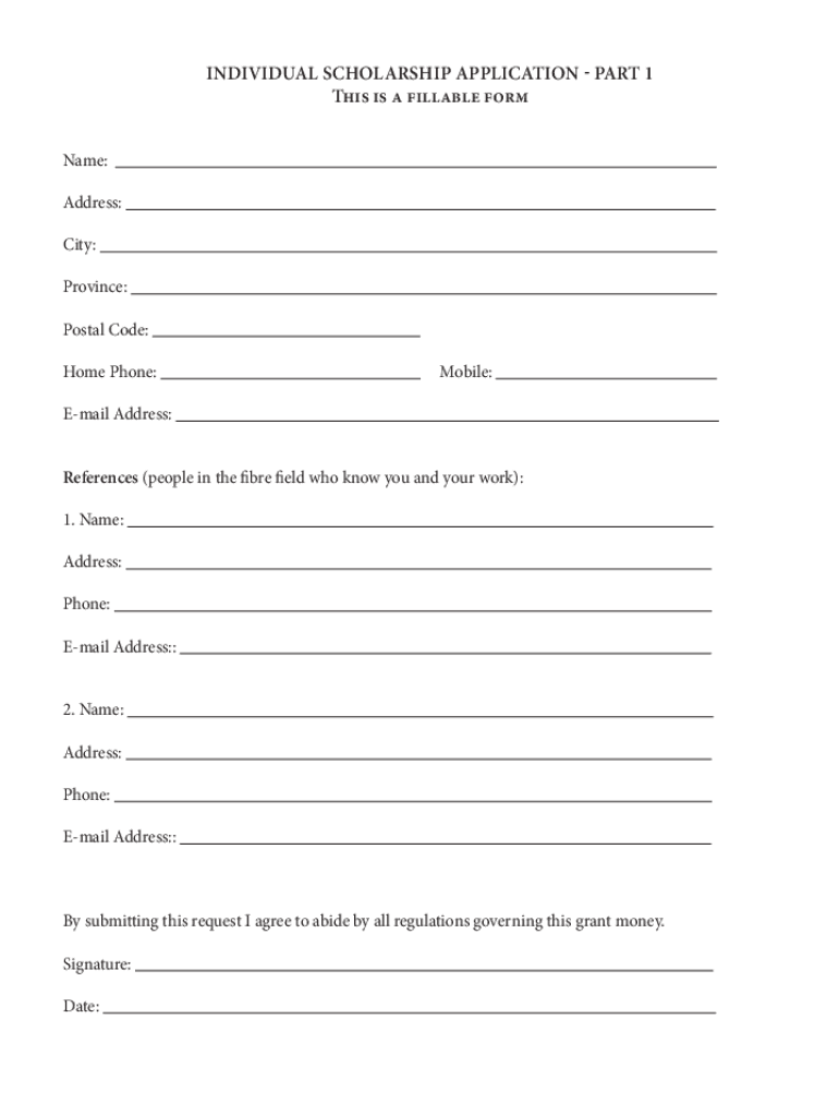 INDIVIDUAL SCHOLARSHIP APPLICATION PART 1 This is a fillable form Name: Address: City: Province: Postal Code: Home Phone:Mobile:Email Address: References (people in the fiber field who know you and